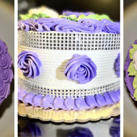 Rich chocolate cake with layers of chocolate frosting, topped with chocolate curls and colorful sprinkles.